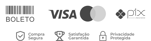 Cartão de crédito, boleto e pix.